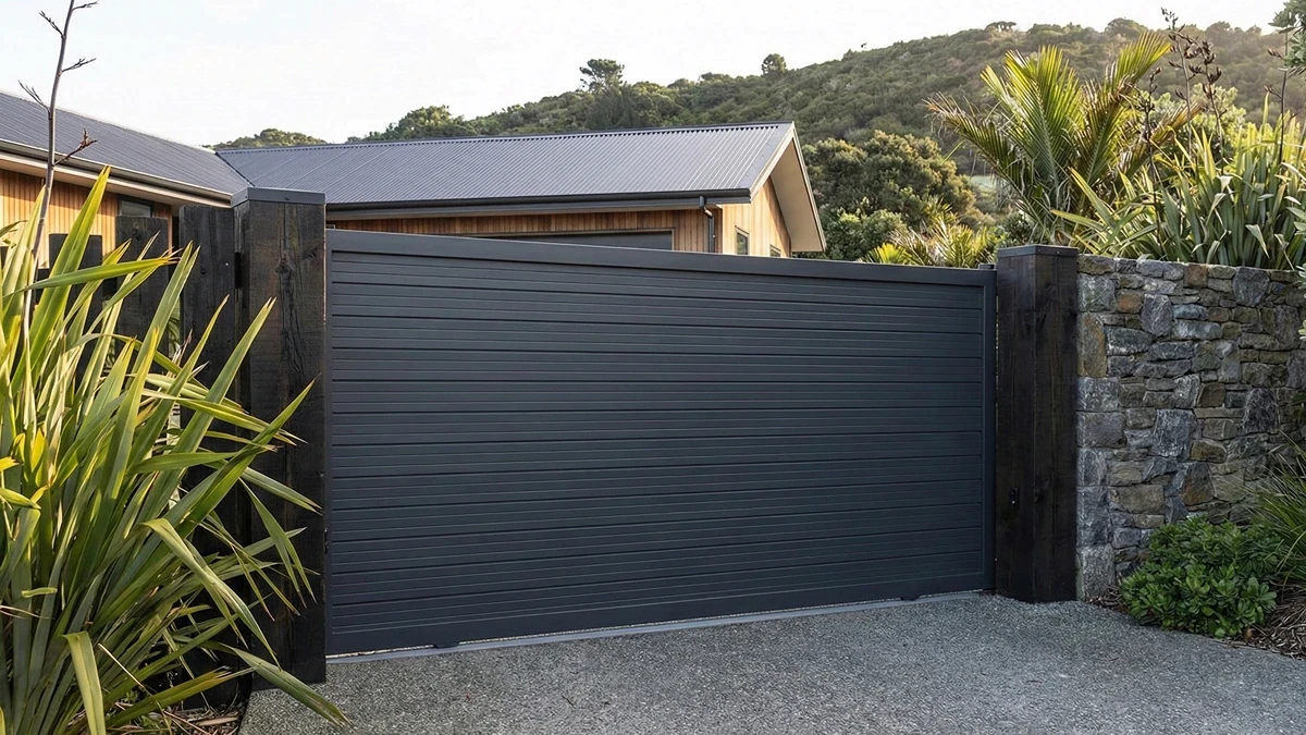 Solid gates are not suitable for high wind areas. The gate is designed to be a visual barrier and does not allow high levels of wind to pass through.