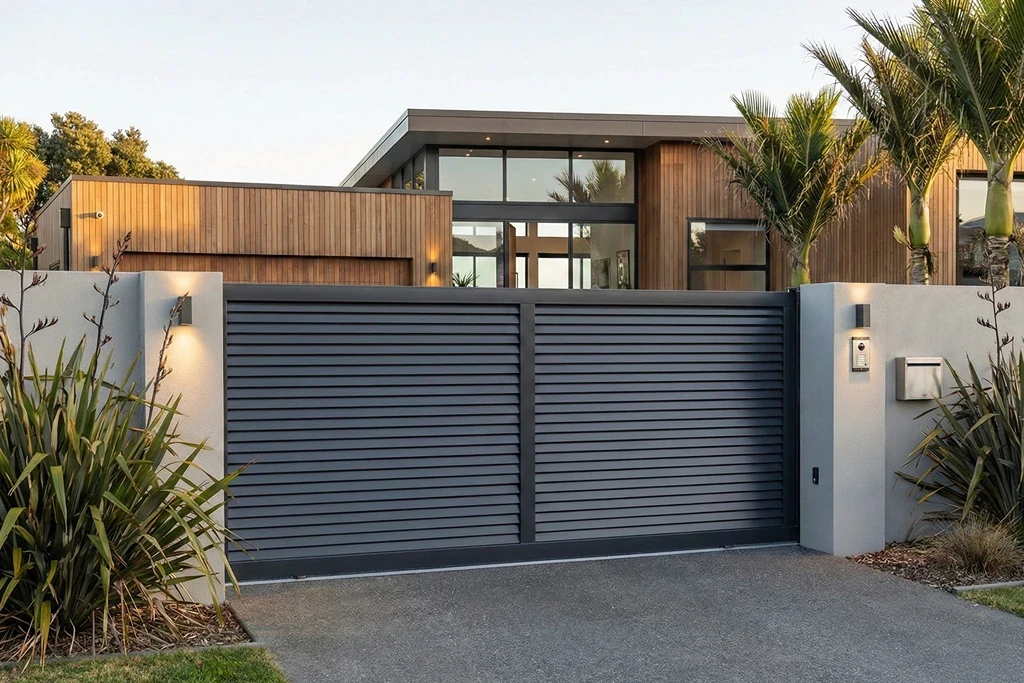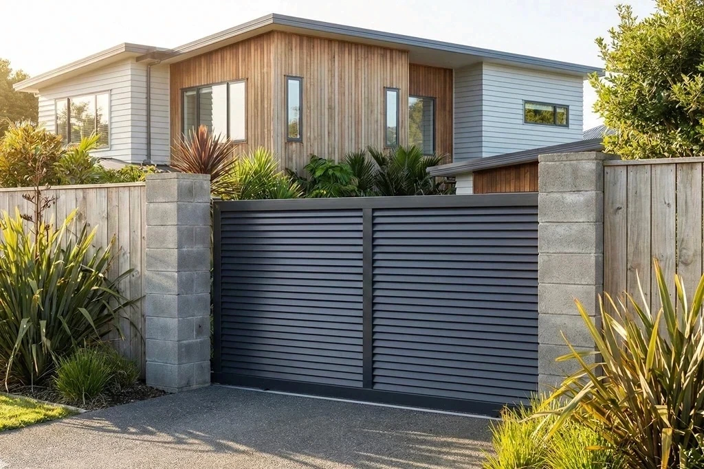 Louvre balances both privacy and airflow beautifully. When viewed front on the gate provides a 100% privacy cover while still allowing airflow through the slats.