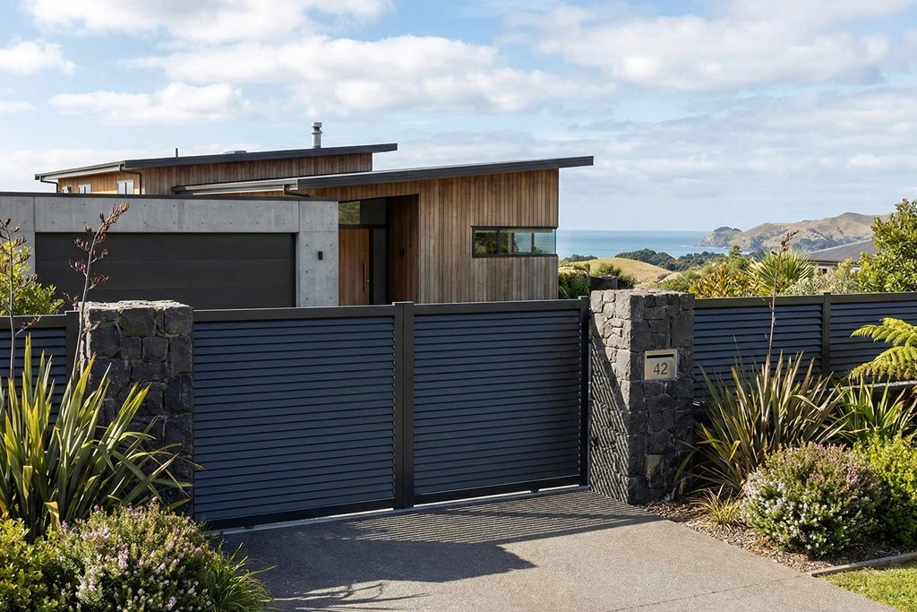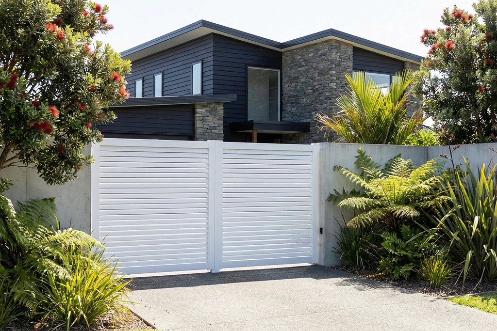 Louvre balances both privacy and airflow beautifully. When viewed front on the gate provides a 100% privacy cover while still allowing airflow through the slats.