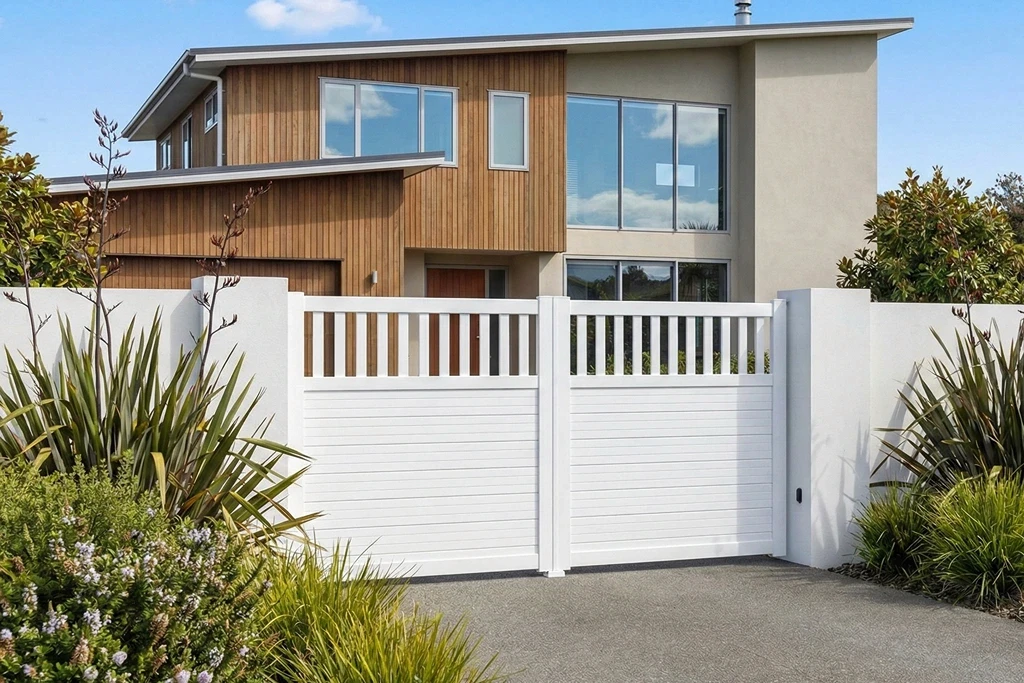 Solid gates are not suitable for high wind areas. The gate is designed to be a visual barrier and does not allow high levels of wind to pass through.